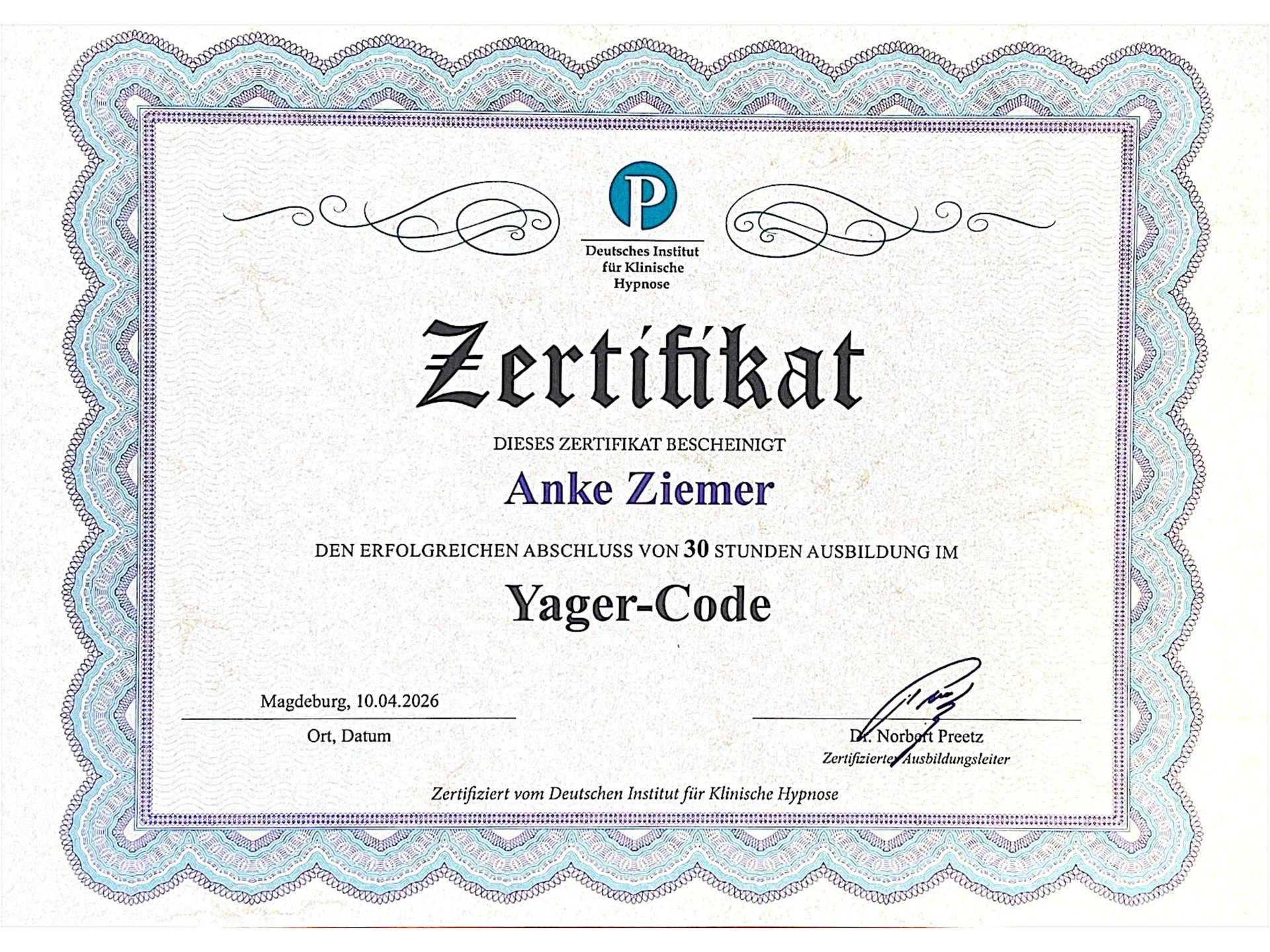 Yager-Code Zertifikat